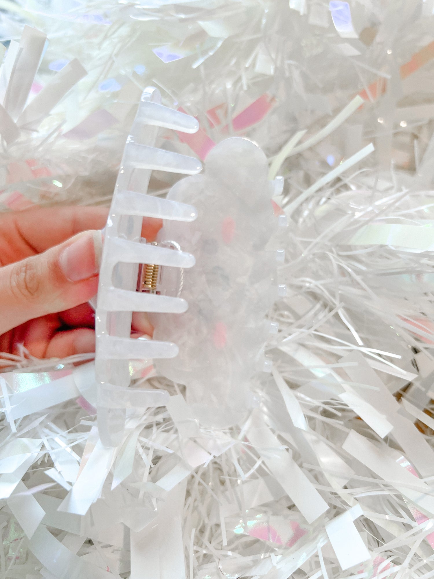 This acrylic hair claw is shaped like a cute little cloud with a happy face.