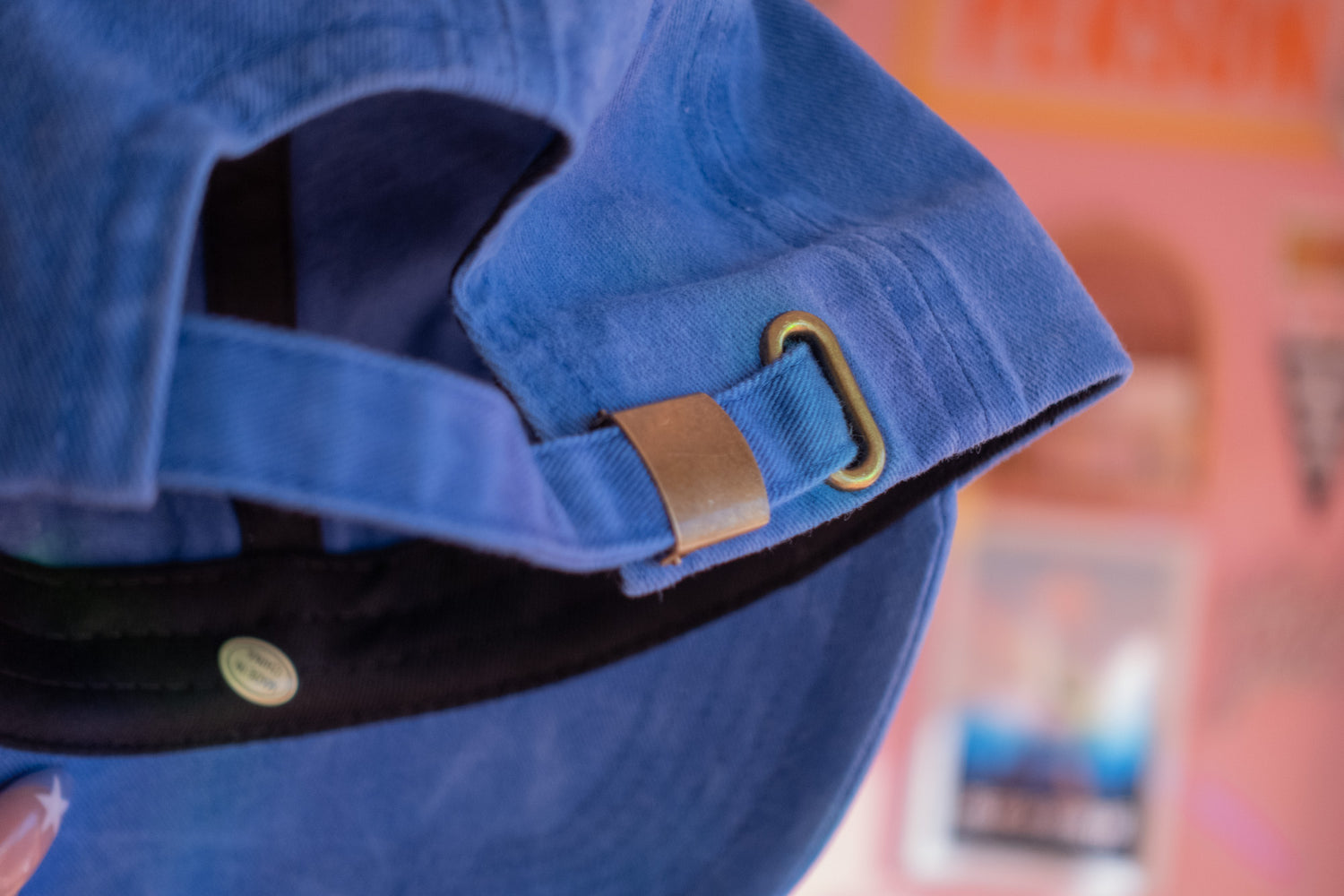 This hat is a washed blue with the "certified clown" embroidered in pink.