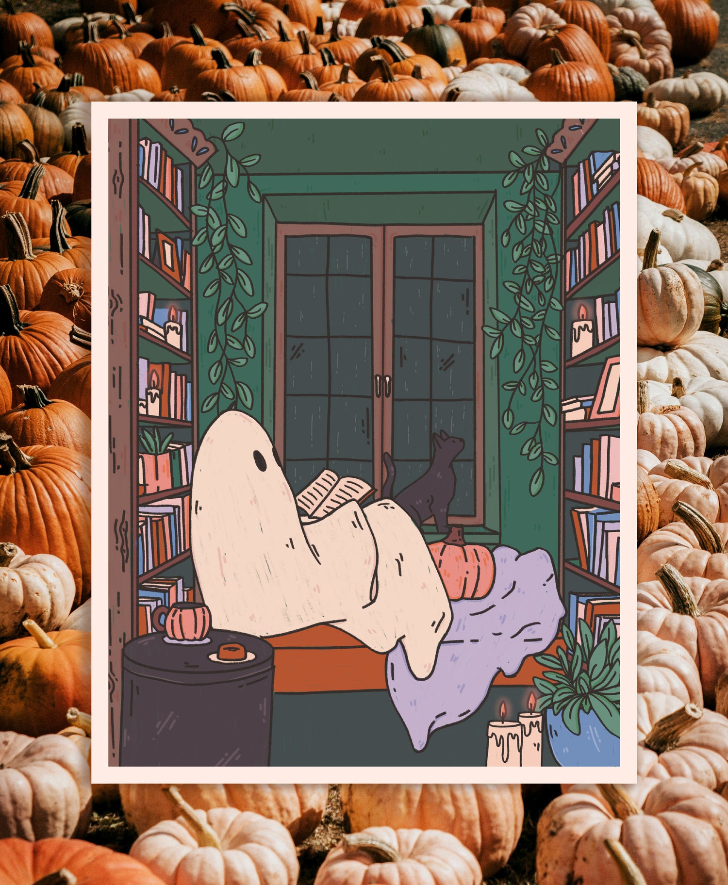 Just a cozy little ghost reading a book while it rains.
