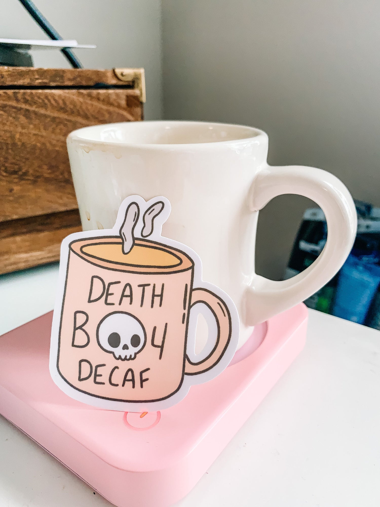 Death before decaf illustrated sticker