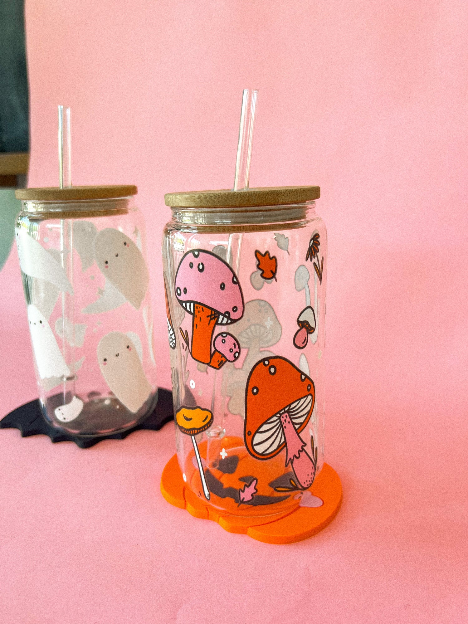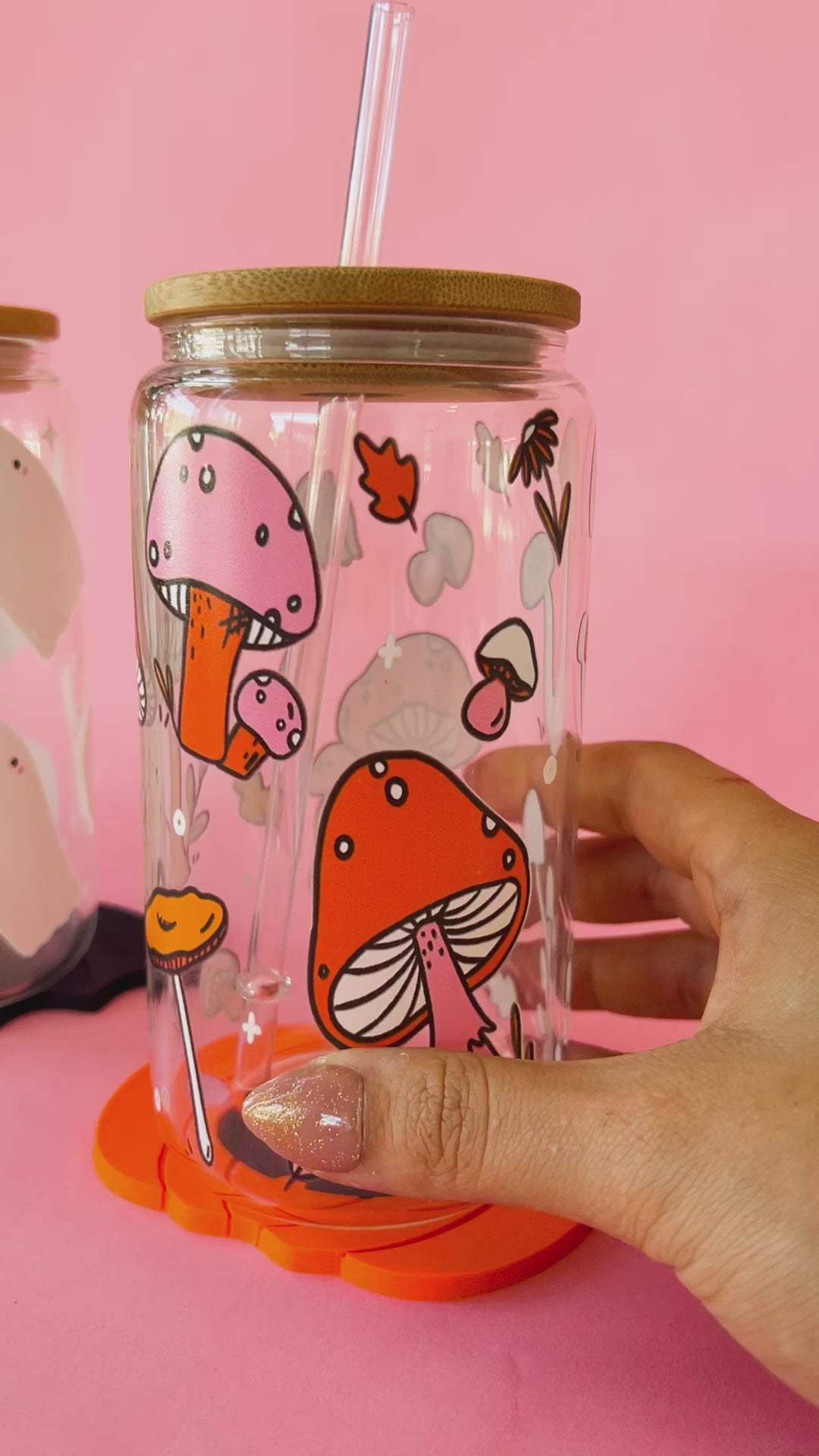 Each mug comes with a bamboo lid and plastic reusable straw!
