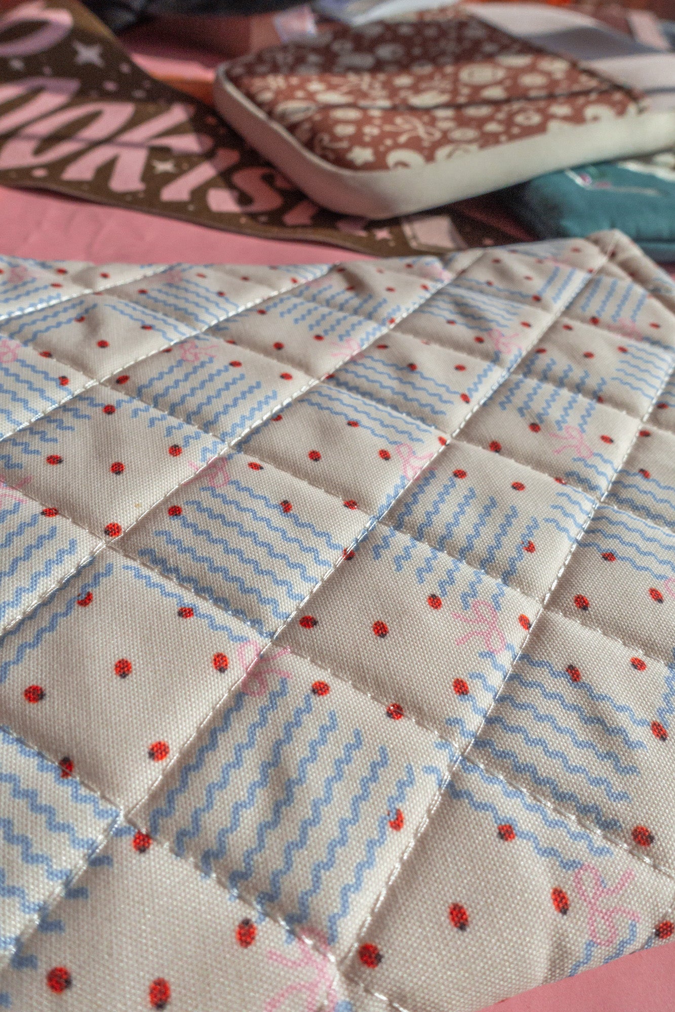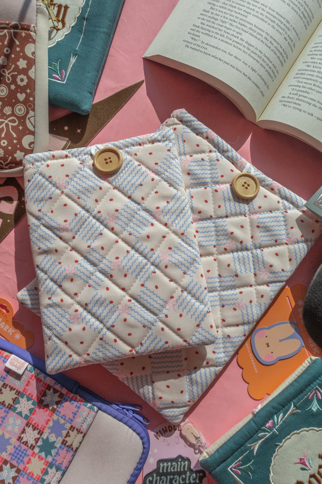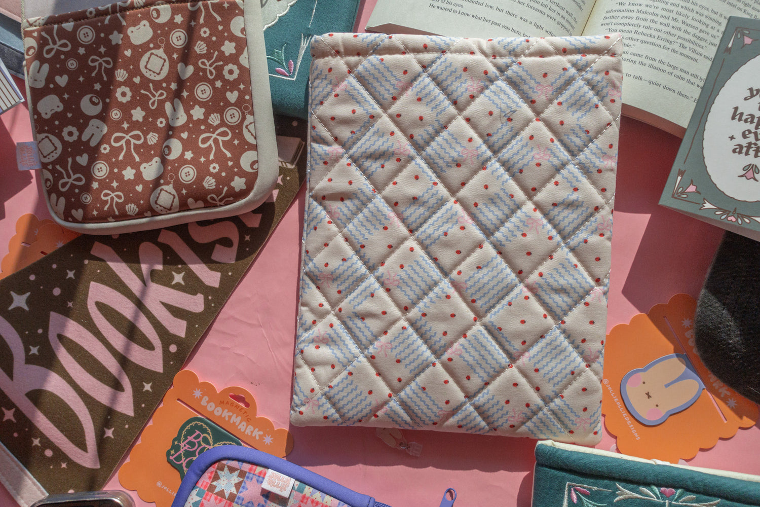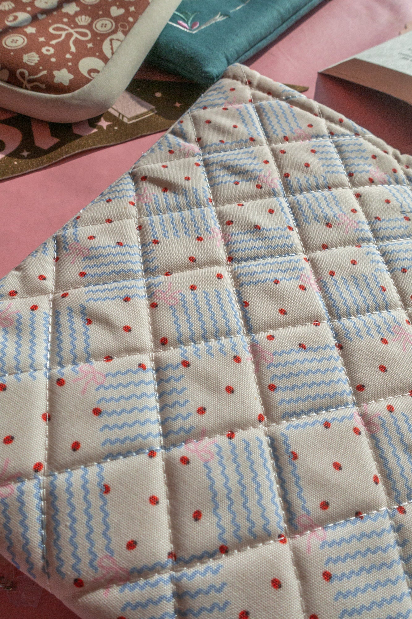 This cute little padded sleeve has a ladybug and bow pattern on it and is quilted!