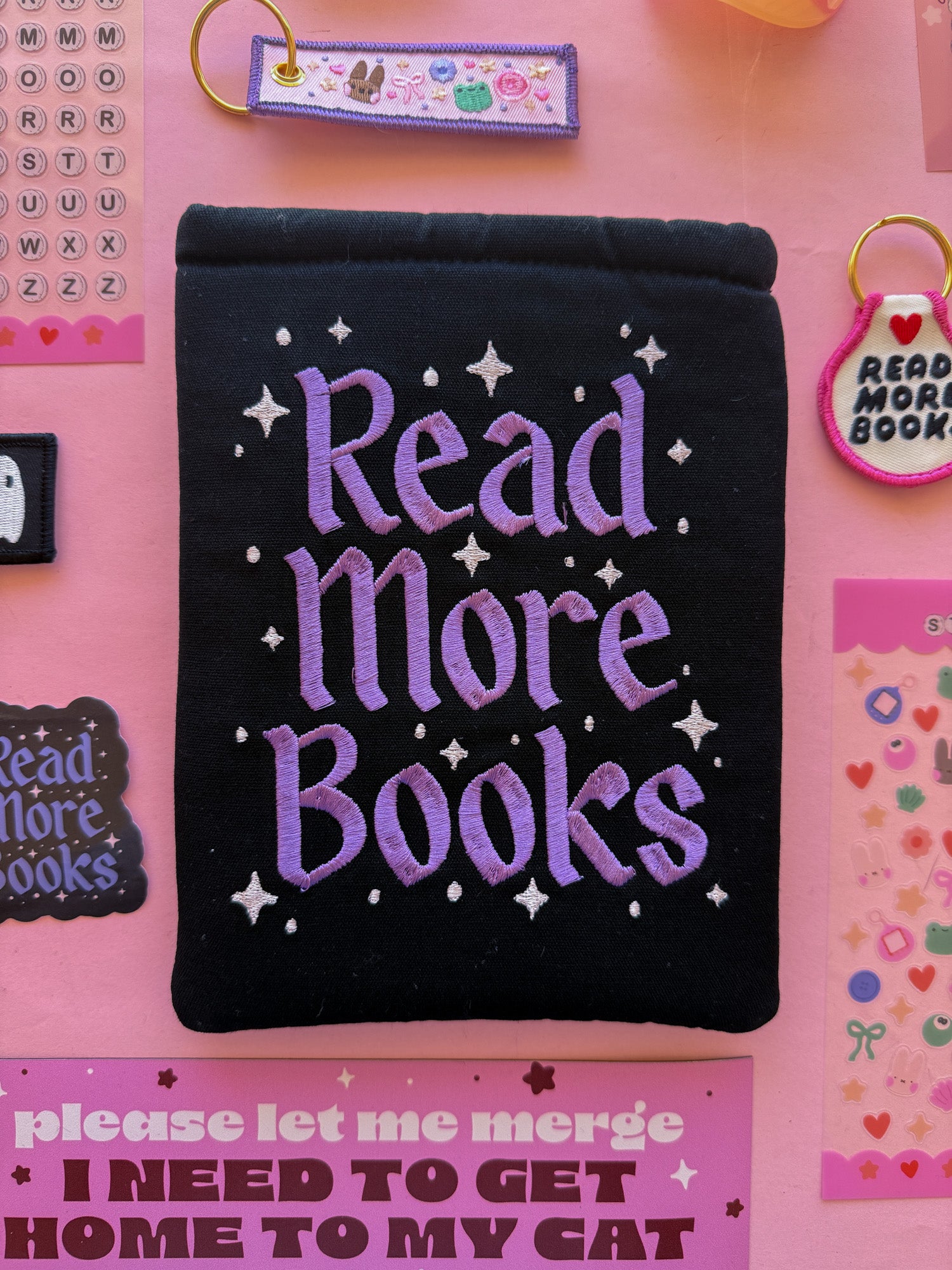 This cute little padded sleeve has an embroidered front with "Read More Books" on the front