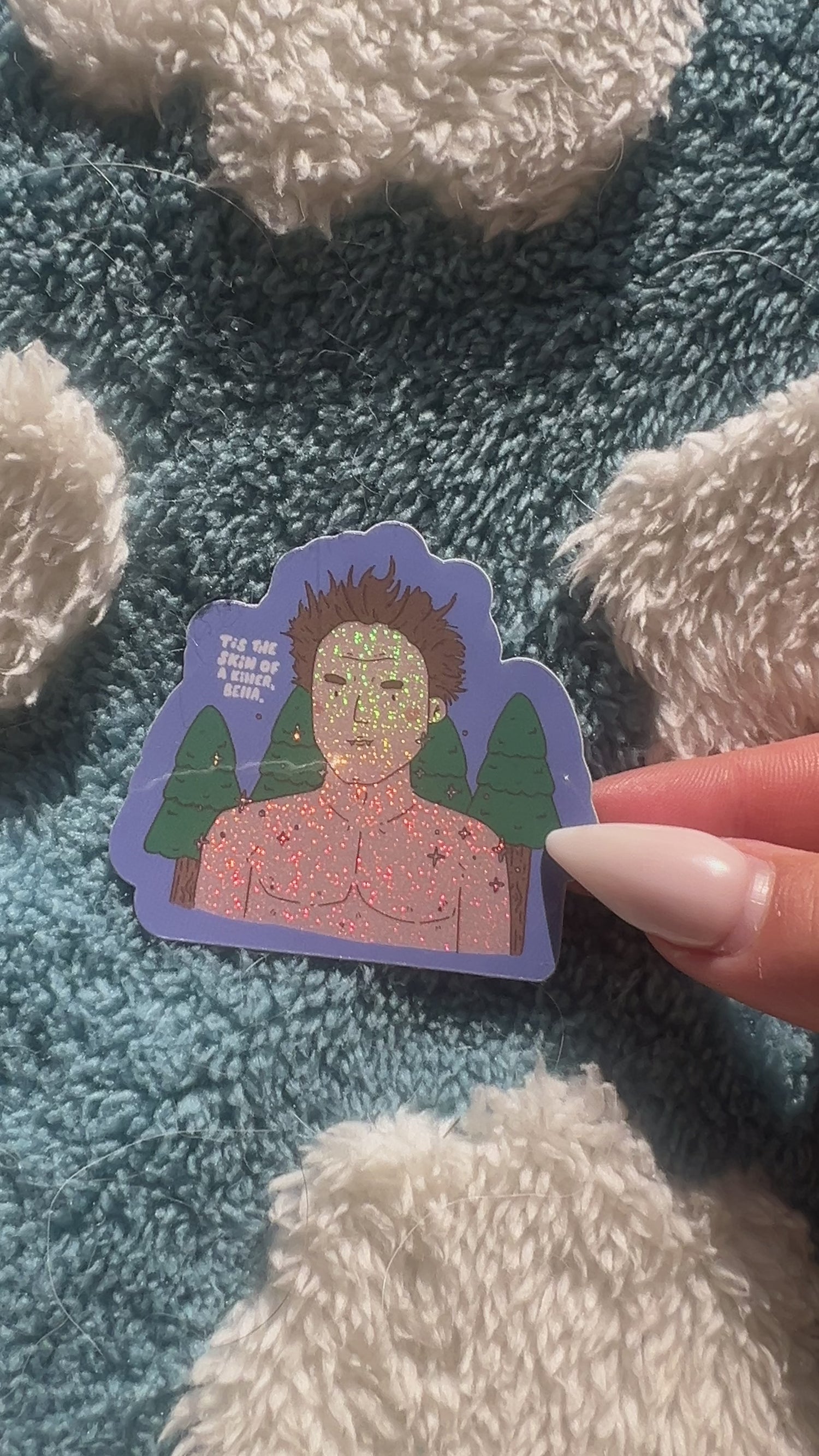 Just a little Edward sticker that sparkles in the sun!! Says "Tis the skin of a killer, bella".