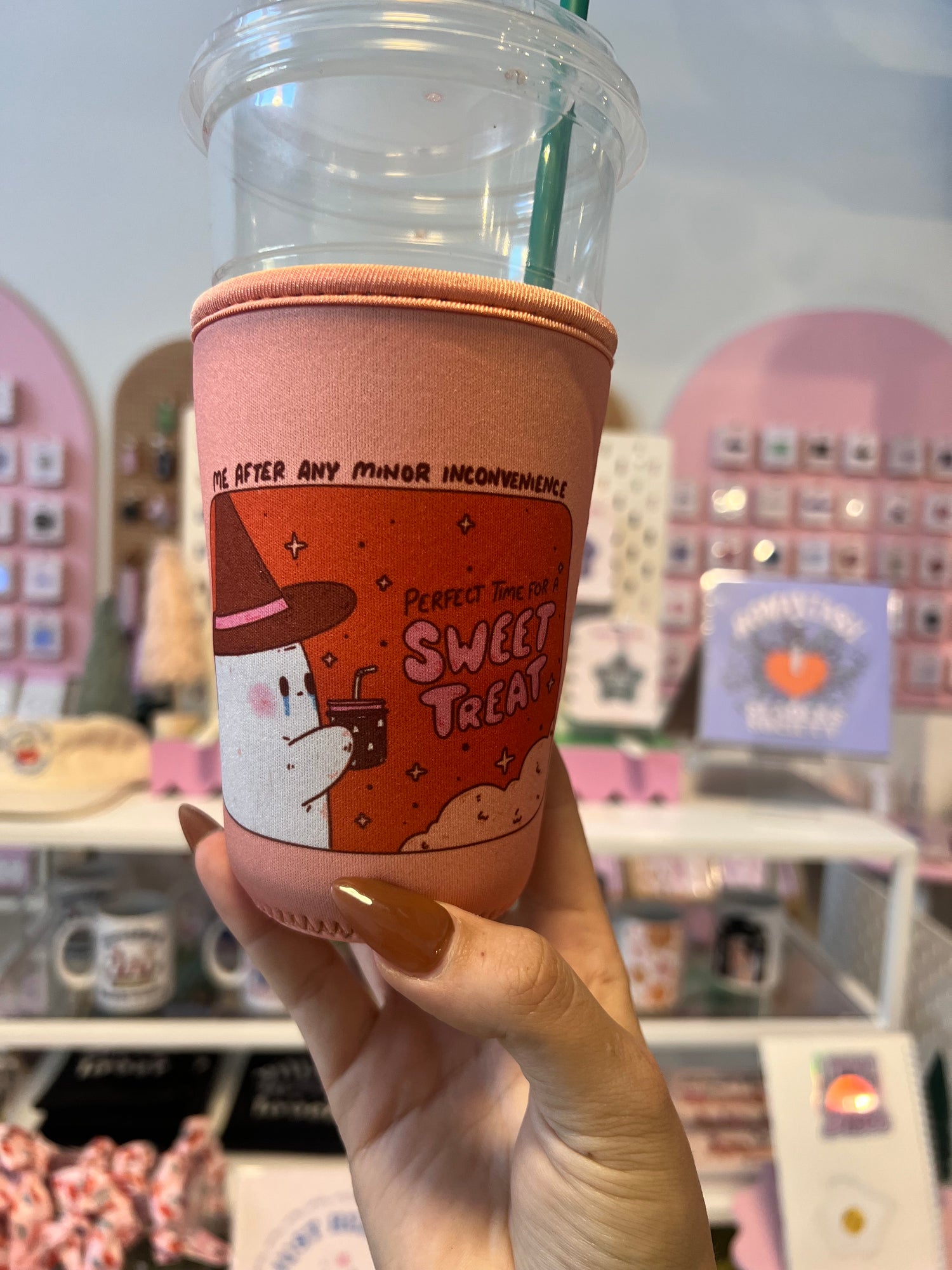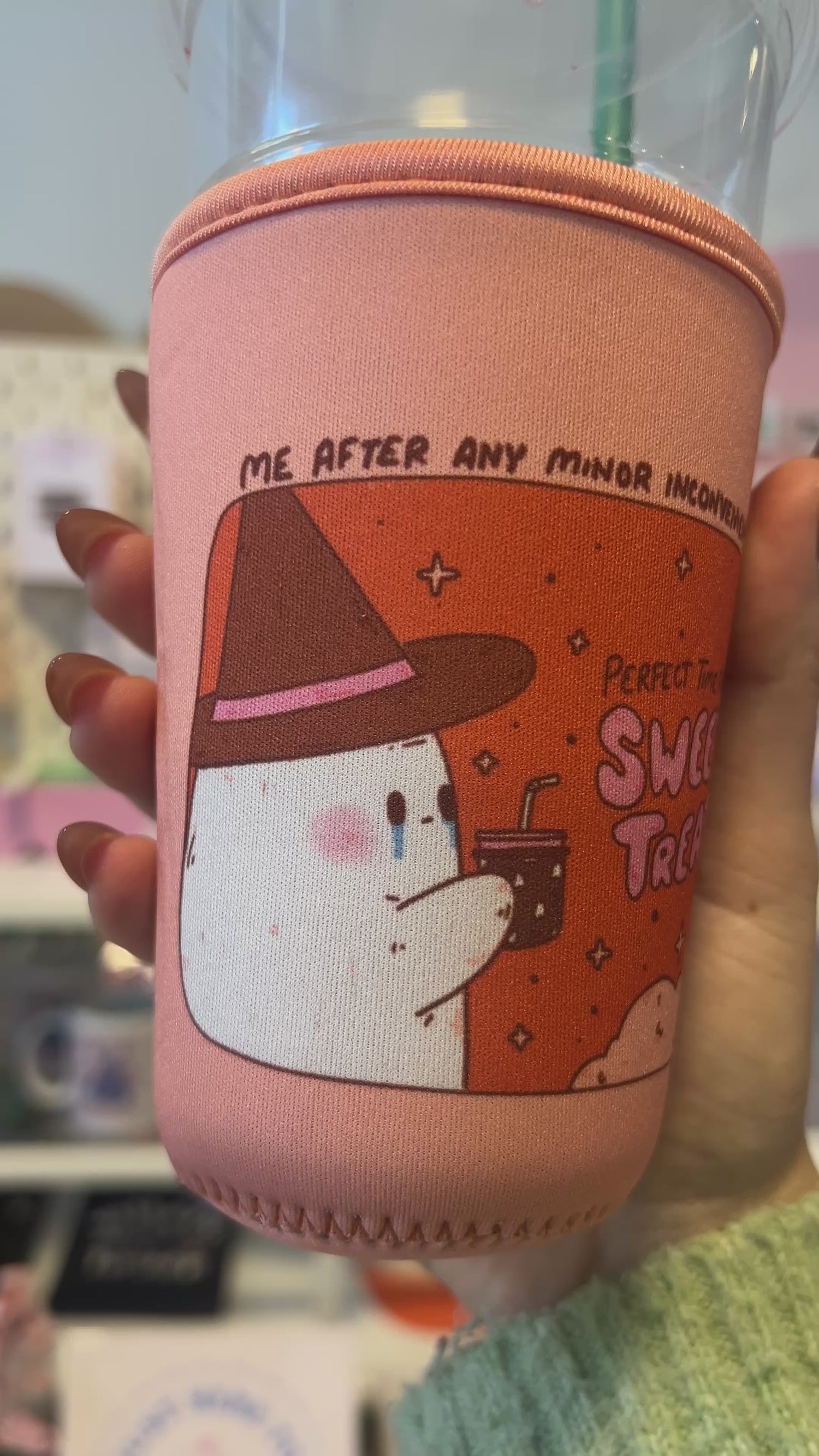 If you said yes to all these things, this coffee sleeve is perfect for you! Keep your iced drinks cold for longer, keep the condensation from getting all over you and other surfaces, and also look cute!